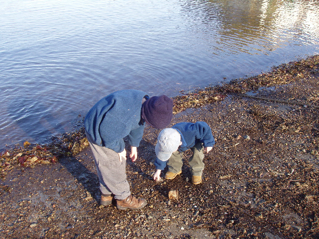 Or, tossing rocks into the icy Atlantic Ocean in Marblehead. Is Matthew showing Timothy which rocks are better for throwing? Not likely....